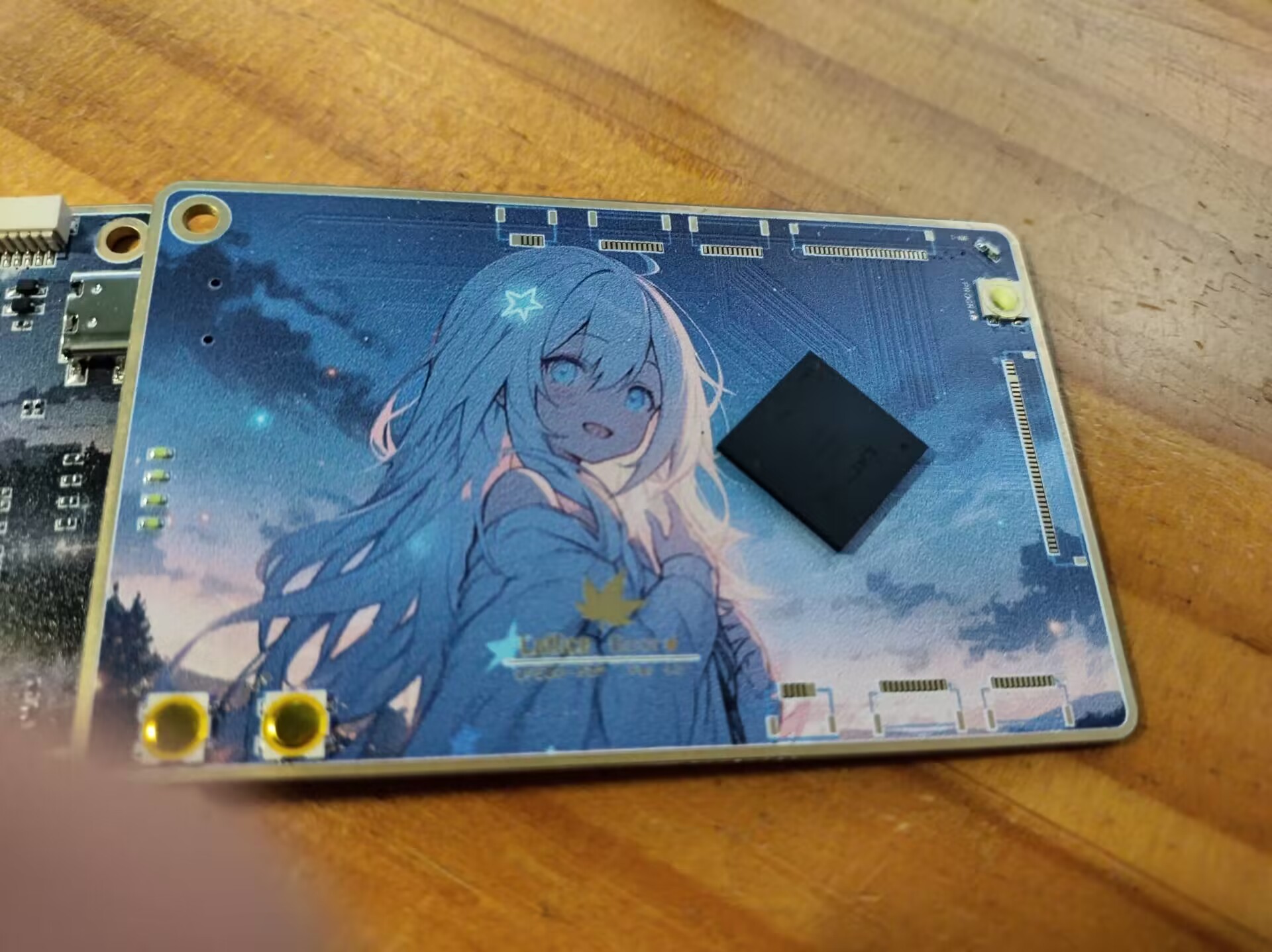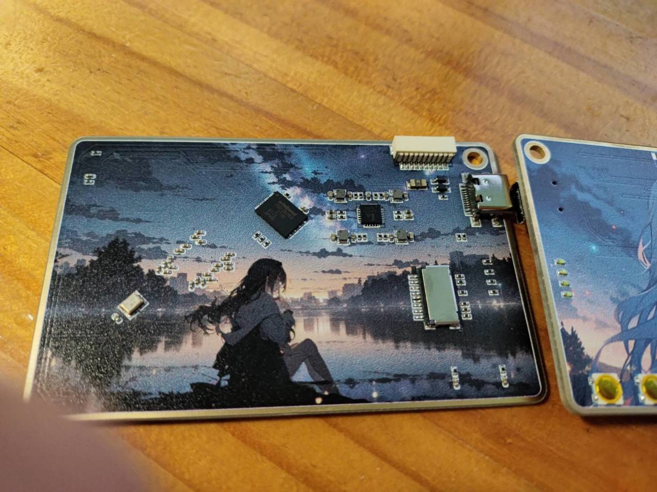 Lattice的LFE5U-25做的彩色丝印板子,尺寸为标准卡大小,为了彩色丝印所以采用了二层板,为了美观接口全用fpc引出。