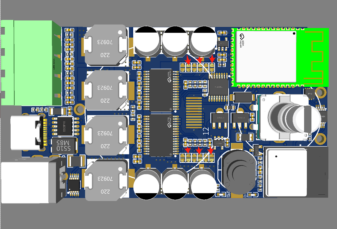 立创EDA+VScode+PlatformIO+Arduino,FFT频谱,差分ADC采样。ESP32需要烧录代码才能使用,不懂烧录程序的可以加群询问,【电源供电后,需要关闭开关,等待电源指示灯不亮后再打开开关蓝牙才能正确上电】。分享了3个版本,视频演示中的是V1.0版本,建议优先做V1.3,其次V1.1或V1.2,具体的器件物料细节群文件里有(Excel物料表是V1.1版本的,其他版本新增减的料自行购买即可)。V1.1和V1.3原理图以PDF文件型式放在下列表中了,【重要说明下】:R38要改为100K(PDF中为10K),不改的话有些充电头的支持不太稳定,还有R32是决定PD快充头电压的,只是个人放在桌面听的话建议贴24K即12V,发热小,如果要放在客厅听的话建议不贴(NC)即20V,空载时发热在46°C,播放音乐时发热基本与空载时的温度持平。(说明:自恢复保险丝选的是5A/30V的,保护电流在8A以上,是足够功率的,TPA3116手册宣称PBTL接法最大100W,双声道即200W,但我个人觉得有个额定50W(25W+25W)左右吧,当然也可能是我音箱功率比较小发挥不出来吧)。如果做板子建议做沉金工艺+1.6mm板厚。自己手焊的话成本在130左右(PCB免费打板)。