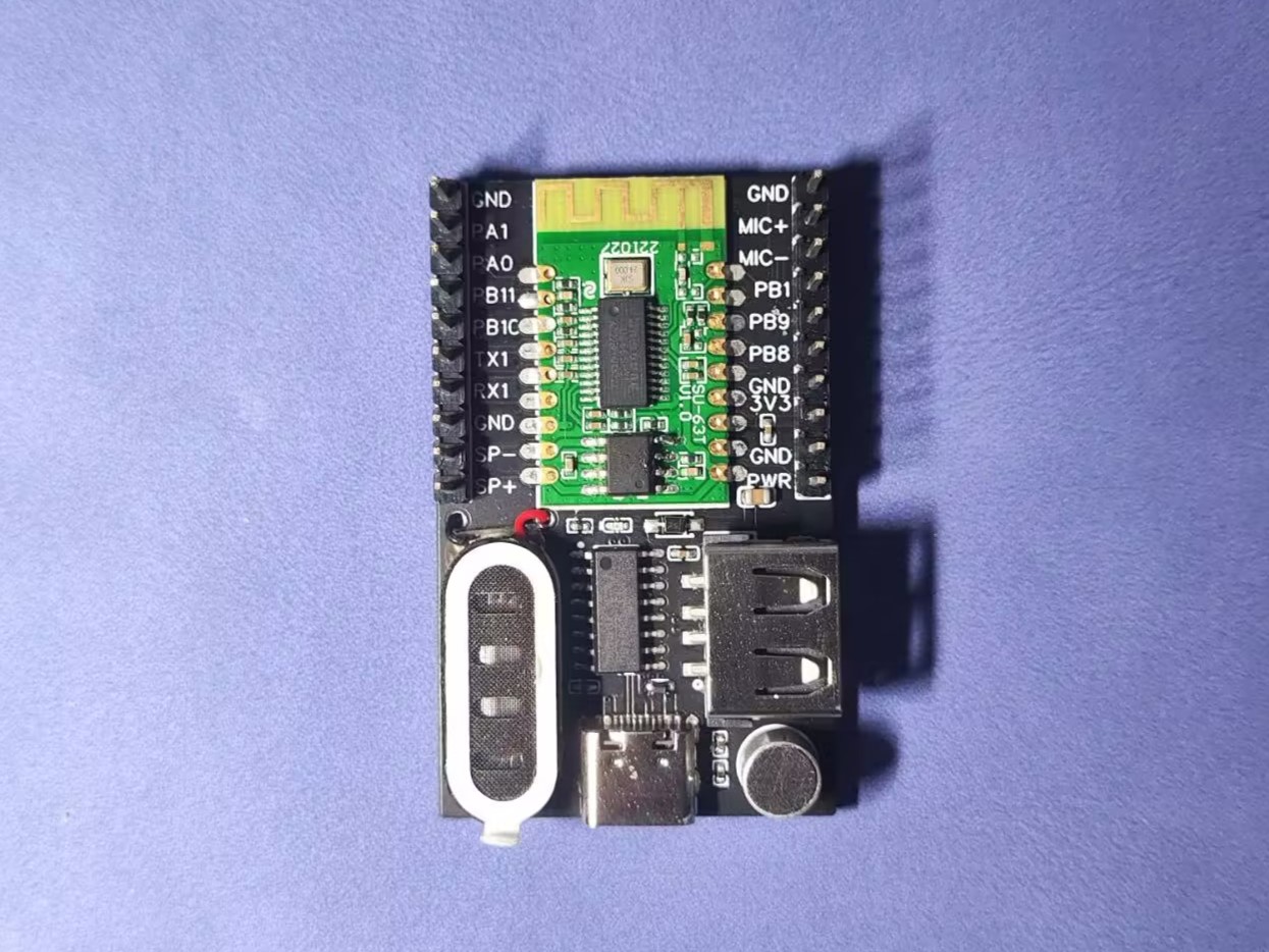 说明:带有电源指示灯、咪头和喇叭,在板子上其中USB为下载接口,Type-C为串口,所有IO均已印出。