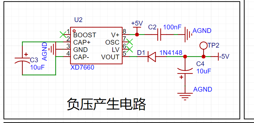 官网中的库是老款的直插7660芯片,所以我们在设计电路的时候5脚需要连接一个开关二极管才能保证电路正常。