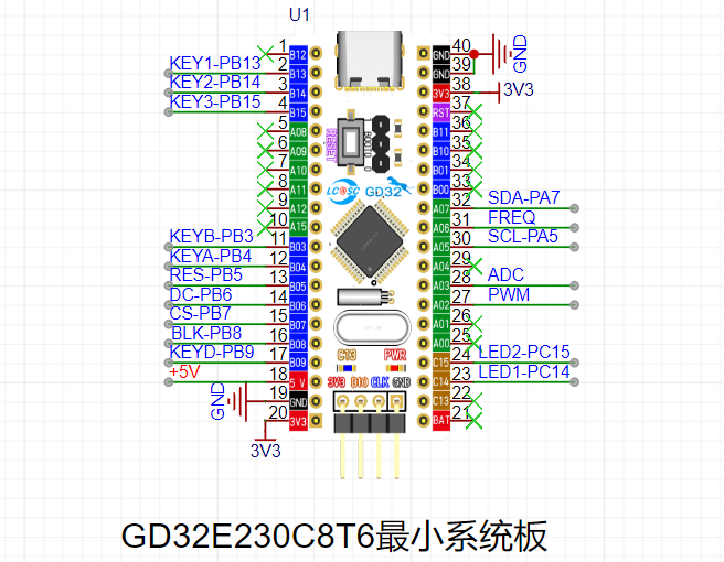 核心板是用的立创开发板推出的CD32E230C8T6最小系统核心板,此版功能完全足以支持此次示波器的制作。