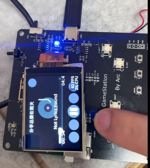 3、最后才是游戏机功能,因为按键的原因,我用的还是旧的GPIO引脚下拉的按键方案。并没跟随大佬用上AW9523。所以得自己动手改一下源码才能跑起来。