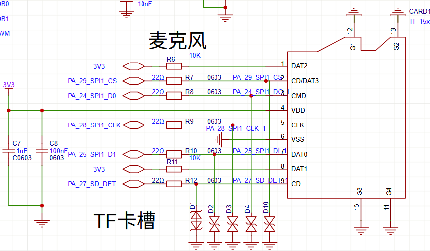 TF卡槽把空闲的引脚进行上拉,根据群里大佬说会让TF卡运行更加的稳定。而卡槽我也换为自弹出的了。