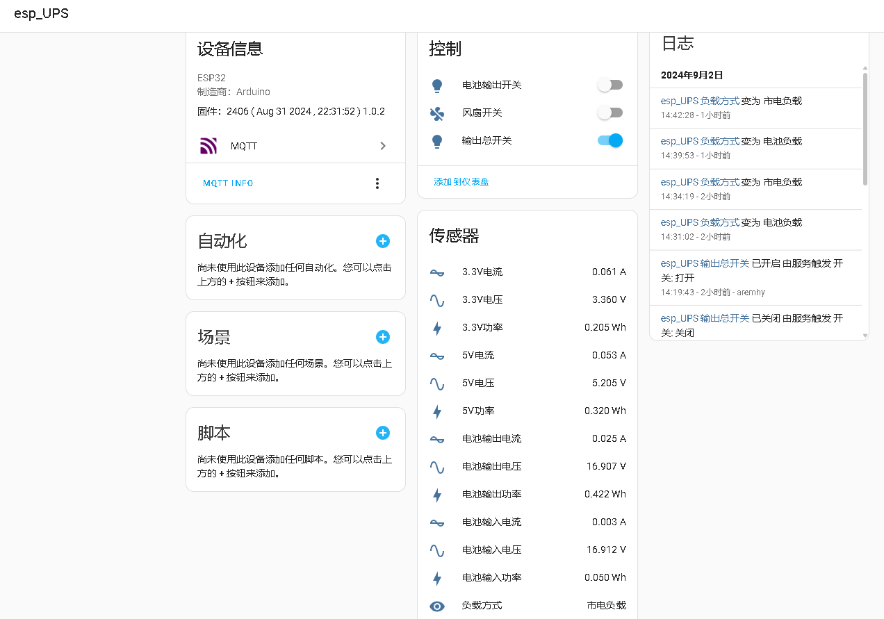 简介:路由器不间断电源UPS,使用cn3006对电池充电,使用bm3451保护电池,使用sy8368对电池降压输出,使用ESP32控制,使用ina3221对电流采样开源协议