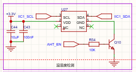 温湿度模块使用广州奥松电子股份有限公司推出的一款高精度数字温湿度传感器模块,采用标准 I2C 接口,模块电器属性如下: