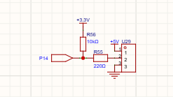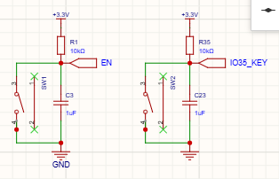 本设计采用按键ESP32的GPIO检测按下为低电平,未按下为高电平,其中加入100nf电阻进行削抖,防止误判多次按下操作。