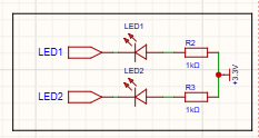 指示灯电路采用两颗发光二极管,通过ESP32的GPIO引脚控制灯光闪烁,低电平点亮发光二极管,高电平熄灭发光二极管,用于指示板子当前状态。