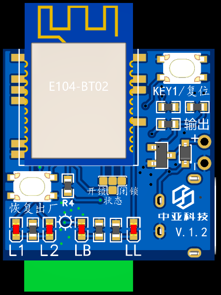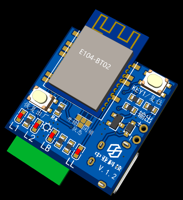 手机未连接蓝牙模块时,LL蓝灯闪,连接以后LL常亮,触发动作时LB绿灯亮起(连接以后但没有输入密码配对和连接小程序时,LL也是常亮,但不会触发,所以只有LL常亮,LB不亮)。