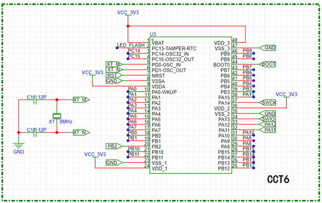 5) SWD 下载电路:提供了用于固件下载和调试的 SWD 接口。在开发过程中,通过 SWD 接口可以方便地更新和调试 Air32F103 微控制器上的固件。