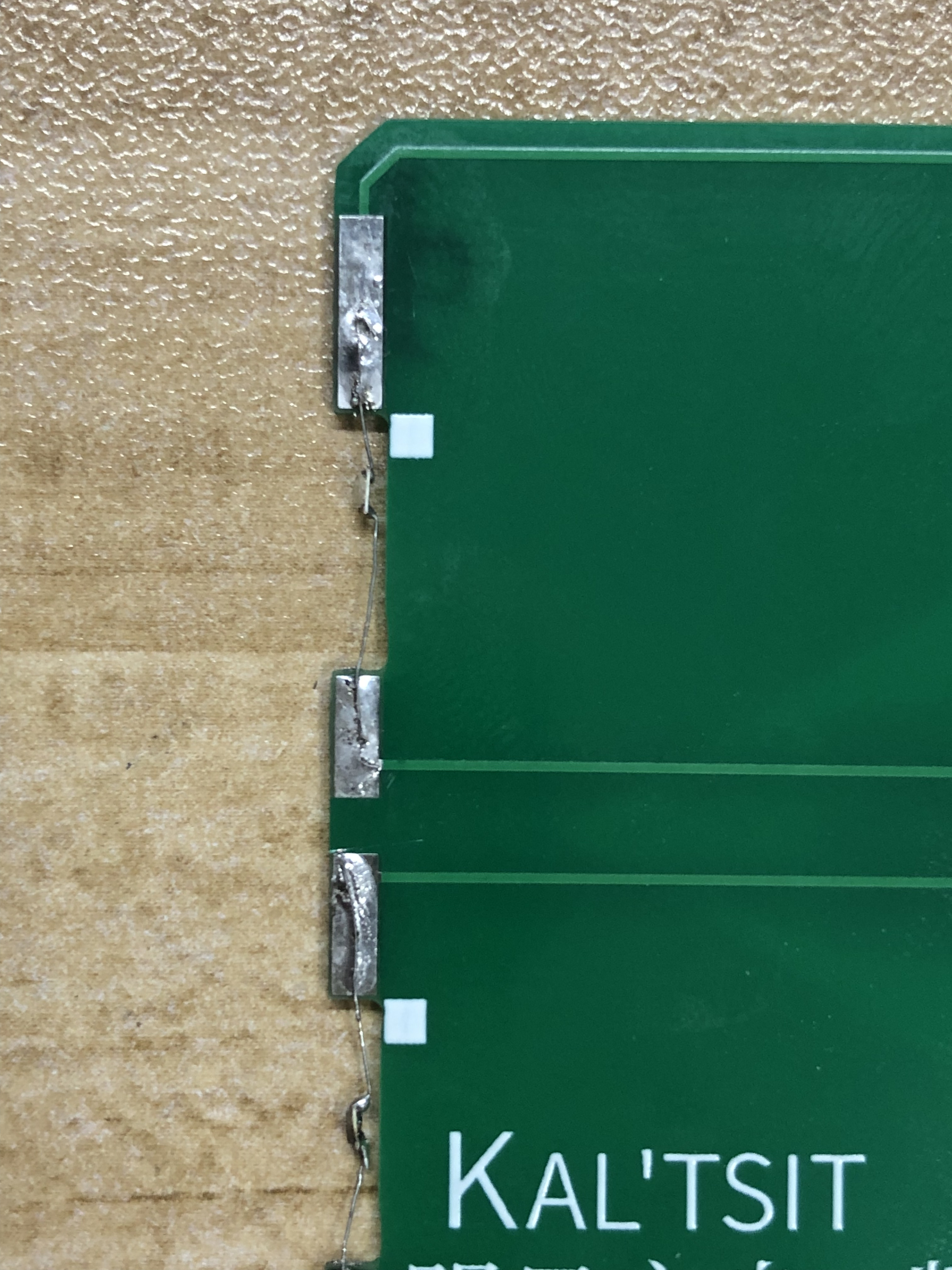 ↓ 为了减少厚度和让发光效果更好,选择了LED飞线,飞线锡不要堆太厚,焊盘留了非常大的空间。方块可以看作是引脚的正极或负极,可以在焊接时帮助确保LED方向一致。