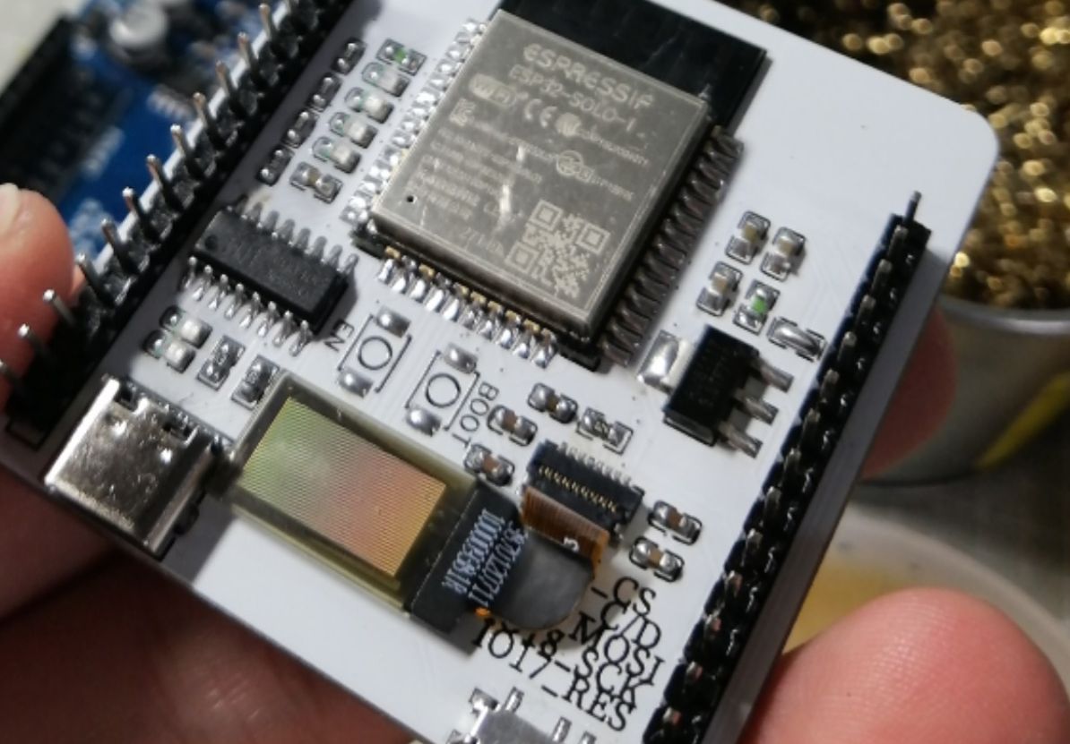 ESP32-WROOM-32E-N8是国产乐鑫科技公司设计的一款模组,根据这款模组进行最小系统板设计,将IO引脚全部引出,增加OLED显示屏、按键以及三色灯外设,可选用C/C++/MicoPython进行开发,方便快速入门开发学习,小巧精致,功能齐全。