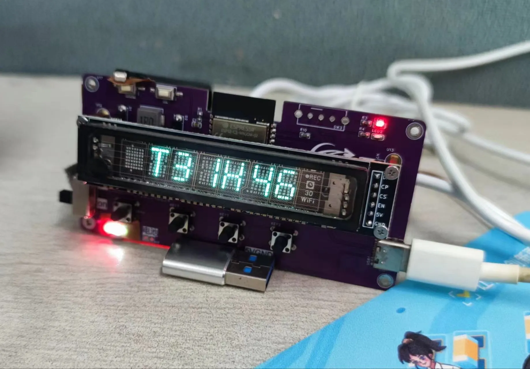 预留了IIC接口,一个单线接口,3按钮。可以接时钟模块例如ds3231,温湿度计例如DHT等等。3个自定义按钮,另一个是IP5306的控制按钮。