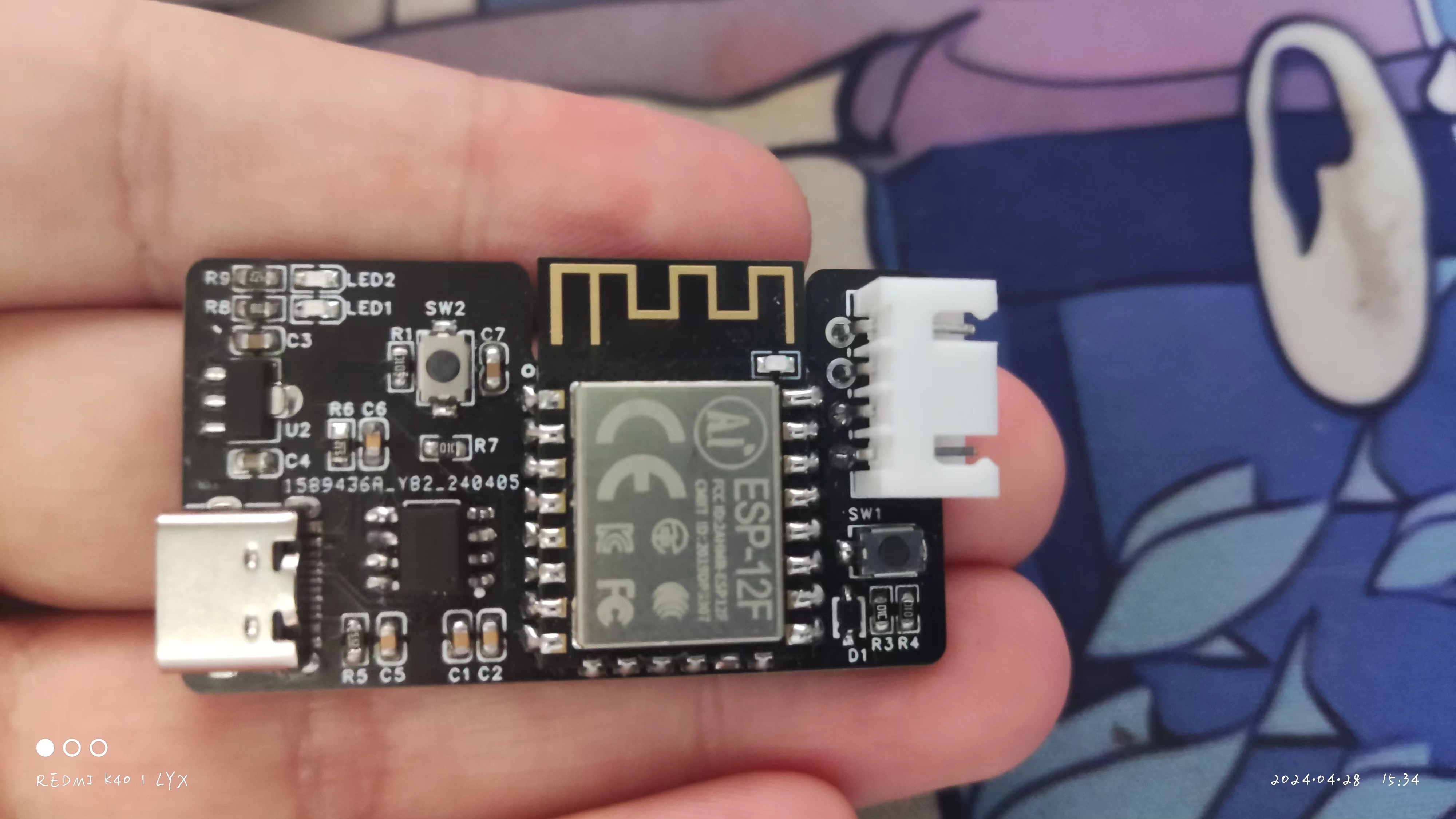 4.灯带和板载供电均由TYPE-C 16pin进行供电,下载程序可使用WCH的CH340N模块,按下复位和下载按键ESP-12F就会处于下载模式