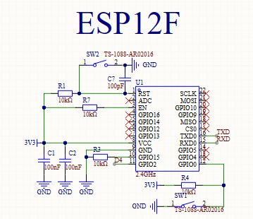 1.在安信可科技的ESP-12F规格书中进行外部电路设计参考