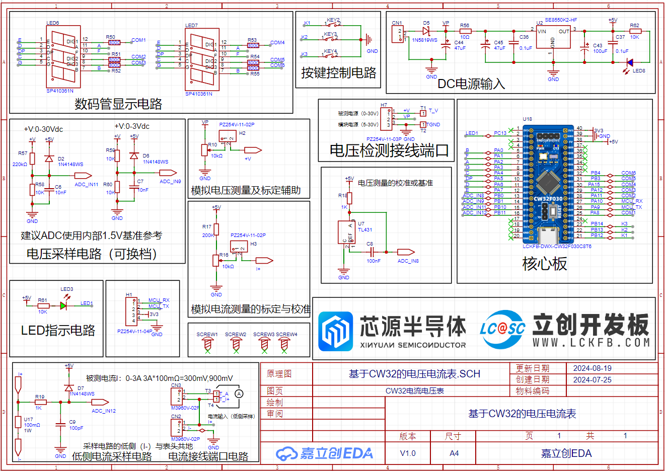 简介:复刻电压电流表训练营的基于立创·地文星CW32的电压电流表,方便快捷检测输入的电压与电流,可为其他设备提供5V,15V电压,提供0.5A,1.5A电流。开源协议