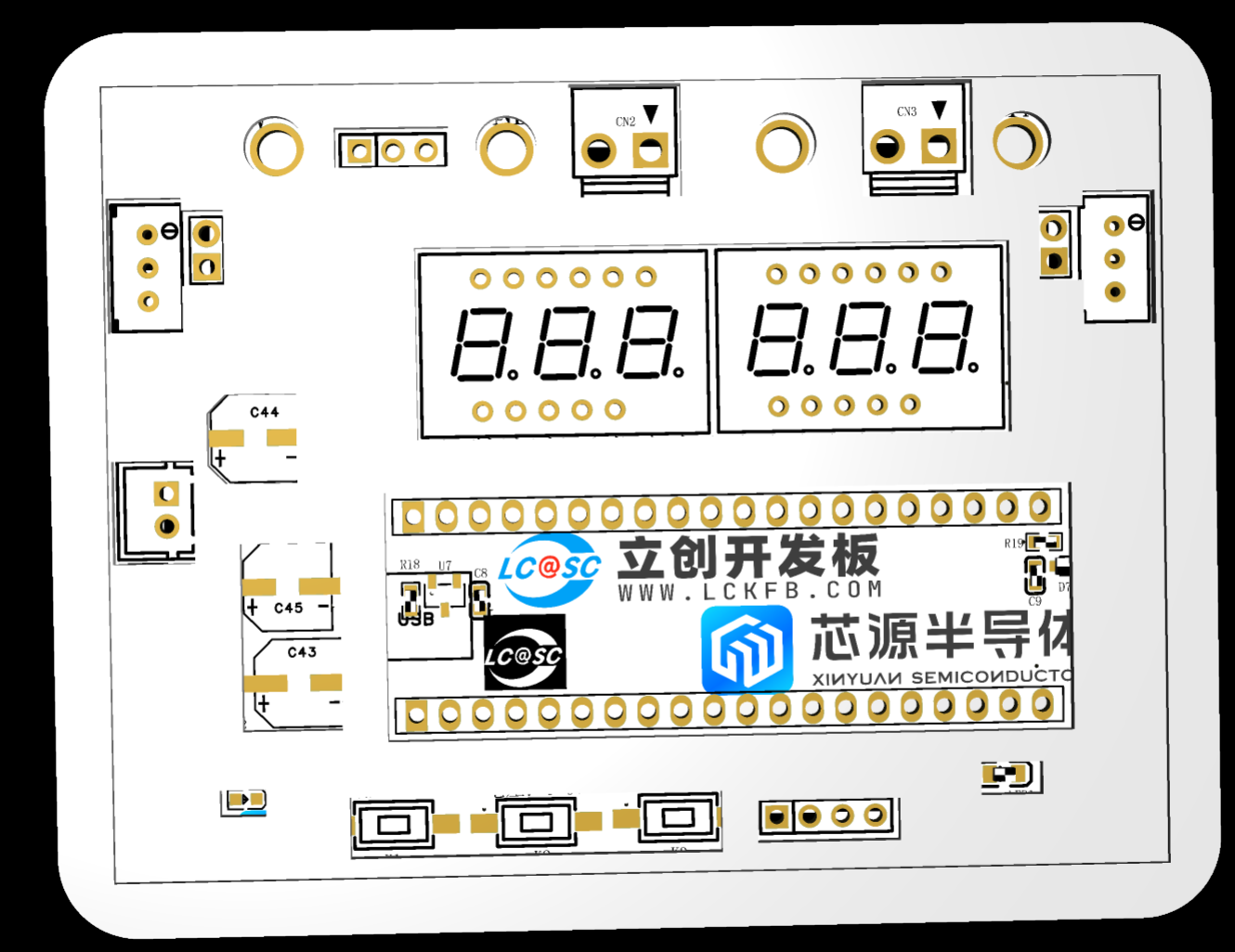 面板绘制前,先导出DXF文件,选择导出顶层,板框层,孔层,3D外壳层中的多层焊盘,板框,3D外壳边框和3D外壳顶面挖槽区域。再导入到面板文件,把边框设为边框层,把要挖槽的区域设为挖空层,可以在打印层放置图片,文字,底色。放上标注的文字,如果打印层的底色不为透明且有灯要显示时,在灯的位置设为透明控制层。