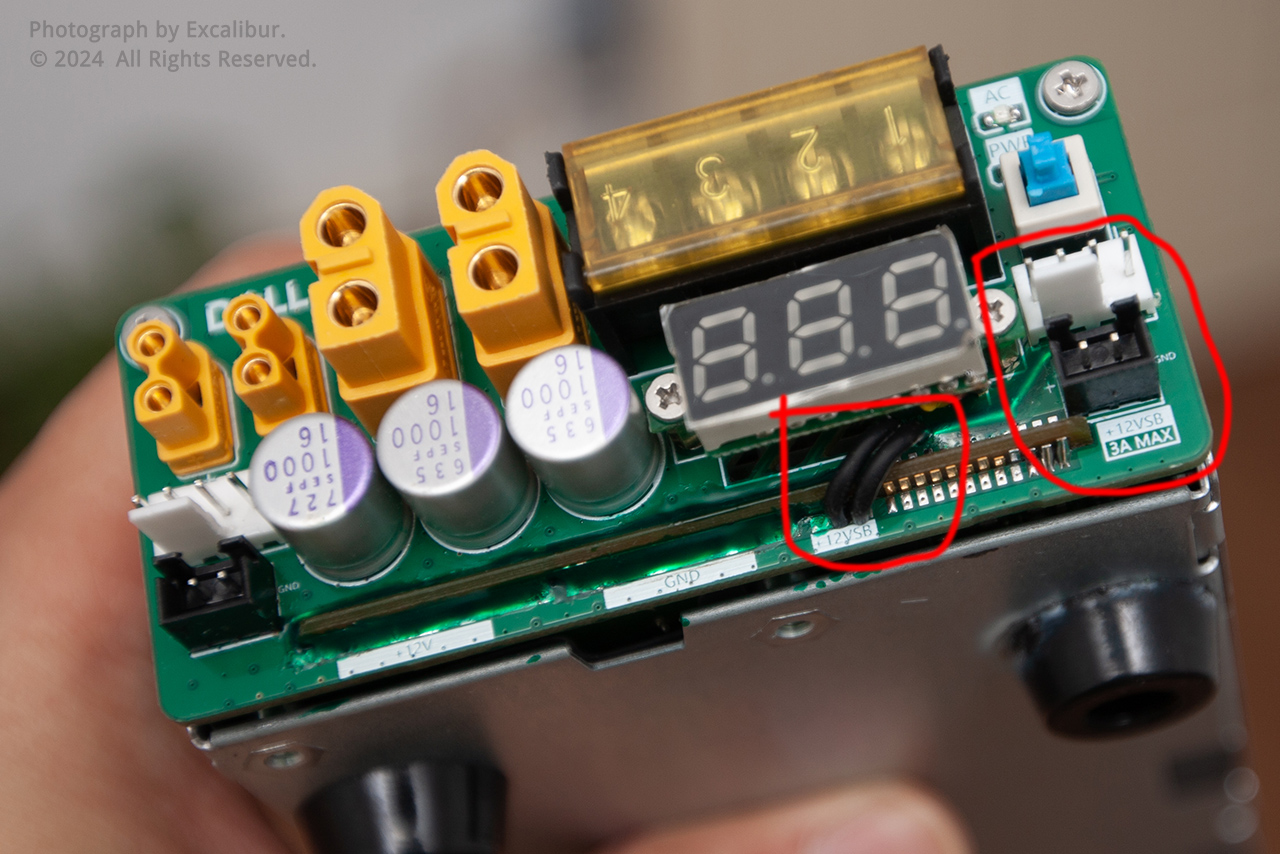 充分利用Dell这个电源12Vsb 3A的带载能力,单独引出插座,接小负载时,不用开机,规避了主电源在低负载区间工作时转化率低的缺陷。