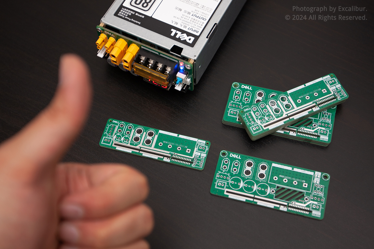低成本Dell服务器电源接口板,采用挖槽直焊方案(不知是哪位天才最先设计出的,磕头感谢)。
