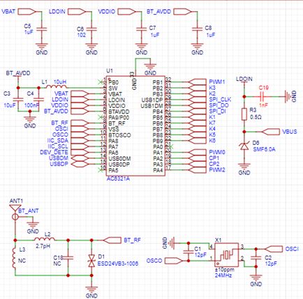 AC6321A是杰里的一款蓝牙芯片V5.3+BR+EDR+BLE specification,杰里在gitee上有开源,大家可 到gitee上做进一步的详细了解,gitee上有SDK、