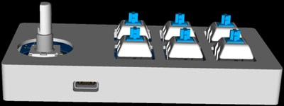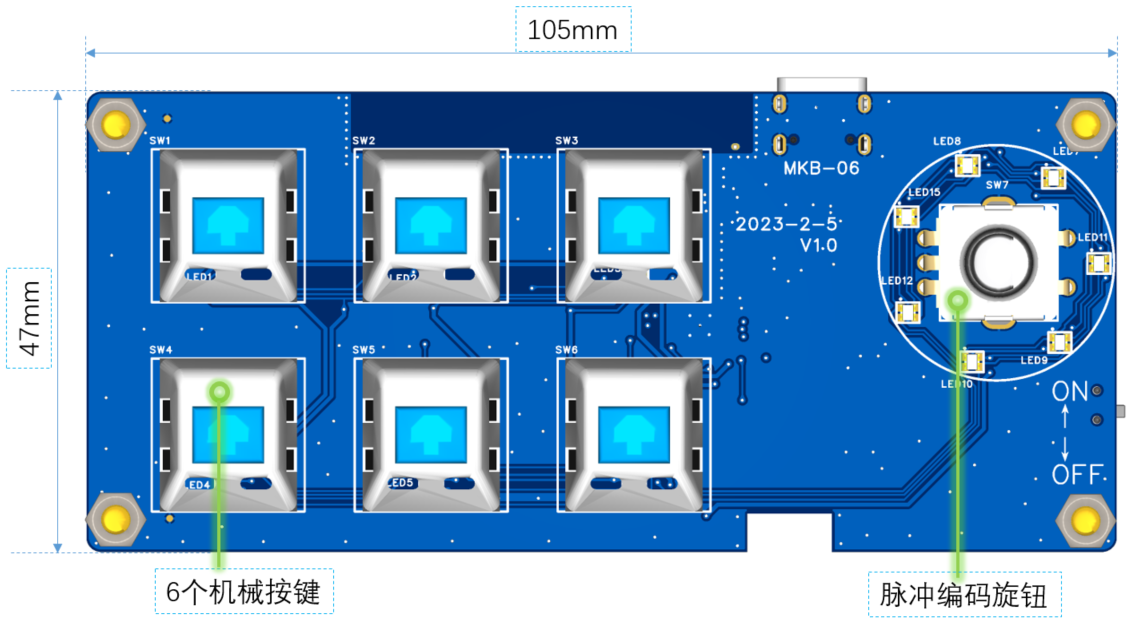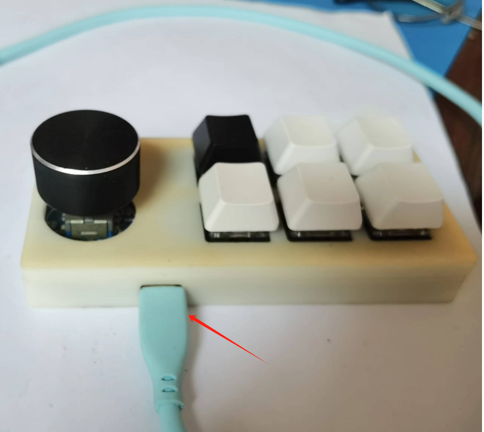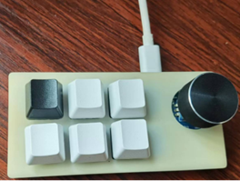 1. 宏键盘实体,由6个按键,一个脉冲编码旋钮,和USB接口等组成