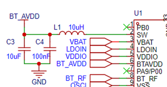 芯片1.3V核心电源电路,这部分由一颗10uH的功率电感、两个滤波电容和芯片内部的DC-to-DC电源组成。