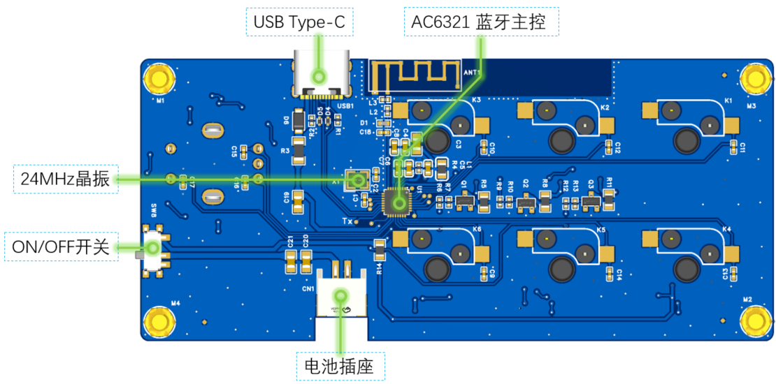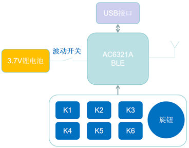 3. 低功耗蓝牙软件,本设计使用的控制器是国产蓝牙芯片AC6321A实现按键的扫描和按键事件有线/无线BLE的传输。
