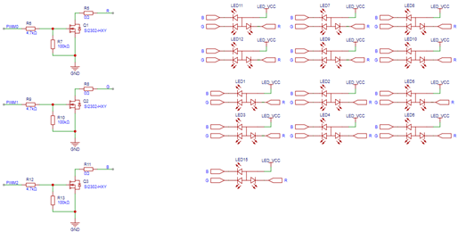 本设计计划使用3个PWM驱动普通的RGB led灯。但是后期个人感觉效果不是很好,这部分也就没有使用。