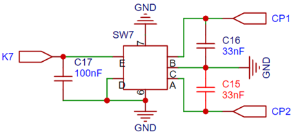 由1个脉冲编码旋钮和滤波电容组成,这里需要注意的是C16,C15这两个电容的容值需根据不同厂家的编码器旋钮要做适当调整,