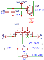 电池电路比较简单,由一个2.0MM的2pin插座和一个波动开关组成