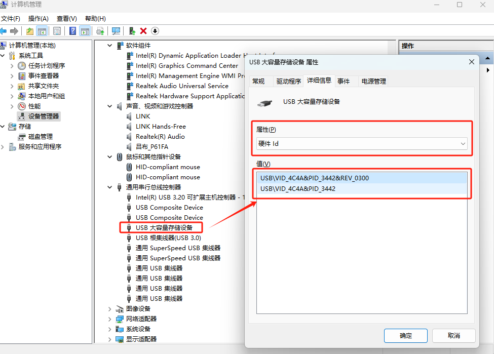 接上USB线到电脑后,电脑端“设备管理器”中应该可以看到如下的USB设备