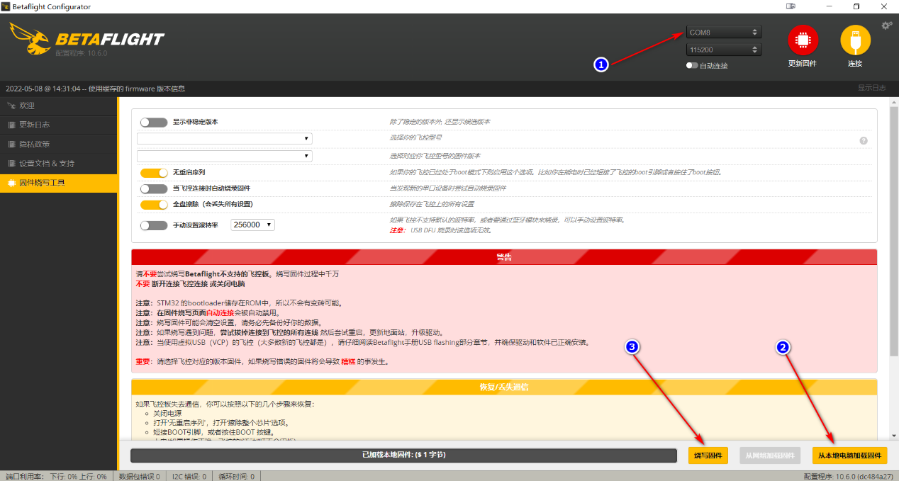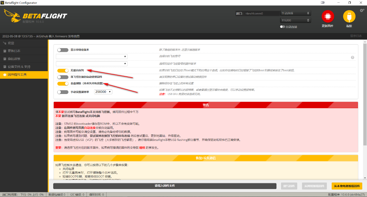 关闭Befaflight软件,关闭所有Chrome应用,然后重新启动Betaflight。