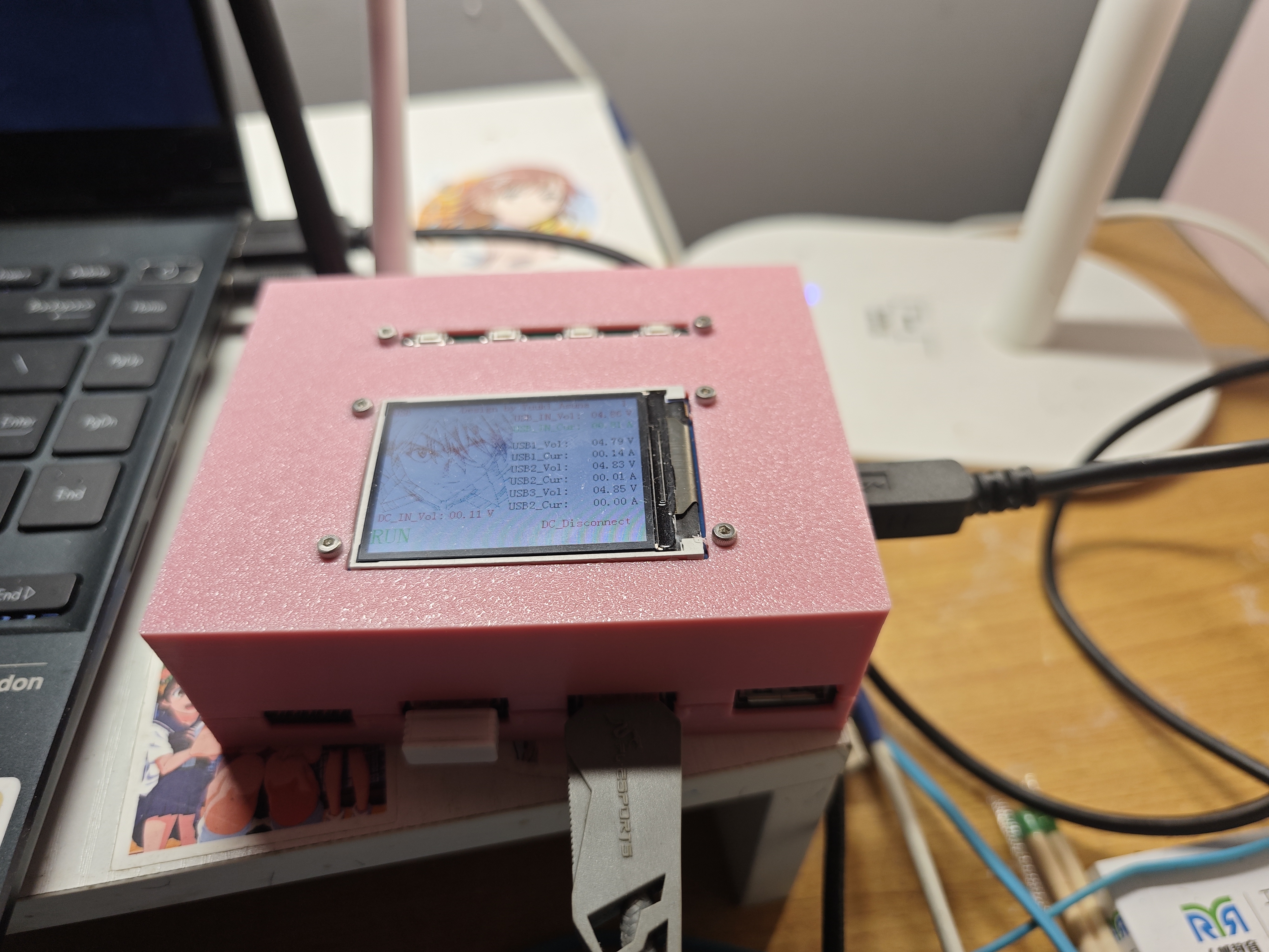 usb拓展坞方面选择了最常用的SL2.1A,电流监测芯片用的是TI的INA219,至多能实现2.6A的电流监测,实测精度还是不错的,拓展坞配备了一个DC-DC模块,能实现6-15V的输入,用于辅助usb供电,插入dc后会自动识别,将usb口输出电源切换为DC输出,每个usb口使用两个PMOS实现电脑usb供电与DC供电的切换,以及根据需要切断usb输出,判断输入的逻辑是DC口插入检测+DC的电压检测。并根据输入源调整过流保护阈值。