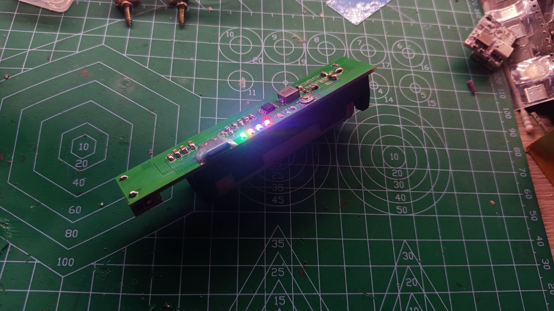 有四灯电量显示,一灯照明,防反接电路,电池反接指示灯,N个滤波电容