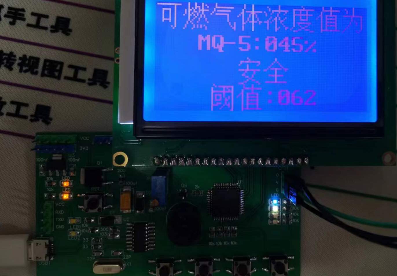 基于这个设计的上述要求,根据功能要求,须设计有下载电路、显示电路、LED控制电路、定时电路、报警电路,主控电路各个电路都有其自己的功能。通过复位按键“KEY1”,电路进入就绪状态。然后传感器开始预热大概20秒,该预设初值为60,然后实时检测周边的浓度,如果检测浓度正常,报警电路不会工作进入休眠状态,屏幕会显示正常。如果家庭的烟雾浓度超过该预设值,报警电路就会报警,并且led会持续闪烁,屏幕上显示报警!。提醒居民要注意。该浓度值还可以手动调节,加与减,当设置最大的阈值,报警电路也是可以报警,需要手动关闭。