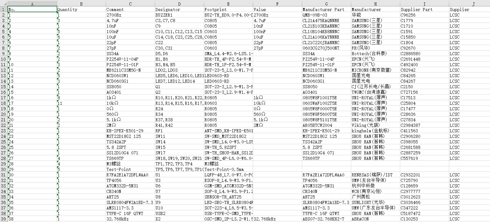 注:项目涉及的BOM清单。这个位置请上传BOM的截图。清单详情请以PDF的格式上传到附件中。建议包括型号、品牌、名称、封装、采购渠道、用途等内容。具体内容和形式应以表达清楚项目构成为准。