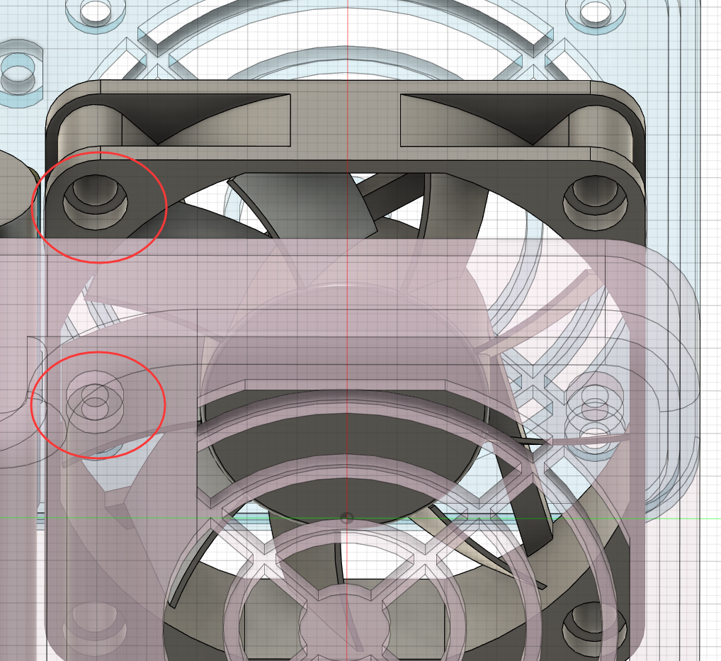 注意:风扇下方螺丝孔位的凹槽对应外壳的突起安装(如图)