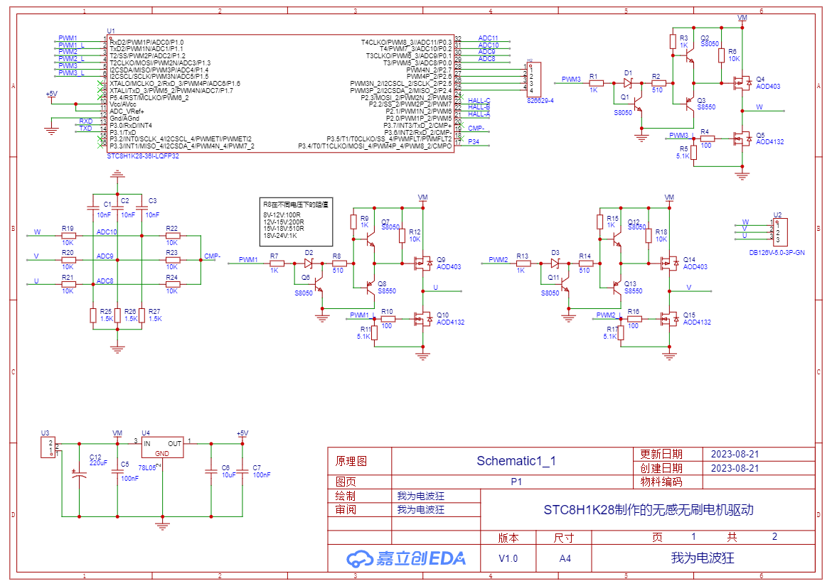 这是一个从STC官网开源的无刷无感驱动,我下载重新画了一块板,并制作驱动成功,现在分享给有需要的小伙伴们。