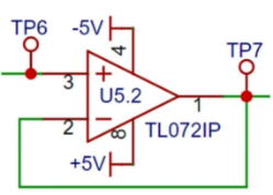 ③ 信号调理电路 电压跟随器 电压跟随器的特点是输出的电压幅度和极性都与输入电压相同,且具有输入阻抗高,输出阳抗低的特点,常用于做缓冲级和隔离级。