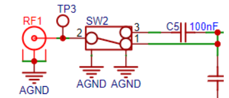 2.系统主要功能电路模块分析 (1) 模拟前端处理电路 在整个示波器电路设计过程中,模拟前端处理电路是最为重要的,其中大量应用了模拟电路的知识,其中包括 ① 输入交直流耦合切换电路 SW2开关2与1引脚连接时为DC直流耦合,SW2开关2与3引脚连接时为AC交流耦合 信号类型可以分为直流信号和交流信号,现实中的信号往往都是都不是理想波形。比如直流电源信号应该是一条水平的直流信号,但都会存在电源纹波(交流信号):在采集交流信号时也可能混入直流信号对波形的峰峰值造成影响。为了保障对输入交流信号的准确测量,利用电容通交隔直的特性,将电容串联到电路中就可以过滤到信号中的直流分量。