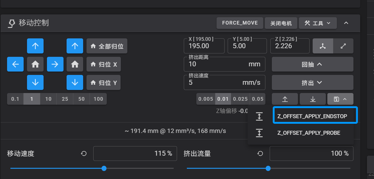 ③如果你当前没有没有Z限位, 那么你要先使用这个命令来设置一个当前的Z位置, SET_KINEMATIC_POSITION Z=填写最大Z高度 , 这样就不用Z归位了
