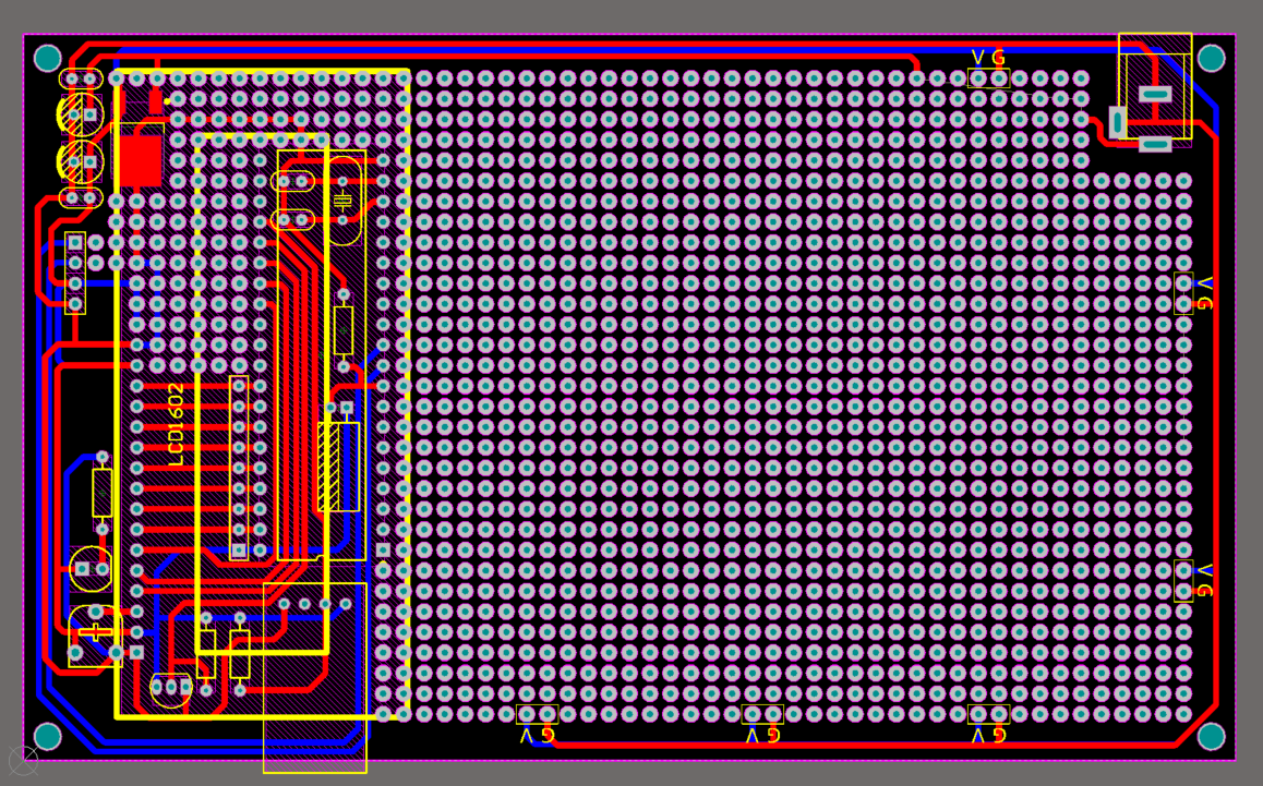 学生党福音,课程设计毕业设计的福音,洞洞板集成了52的最小系统和LCD1602的电路,让你在制作测试时,只焊器件就能完成这部分功能的调试。板子以打板验证。