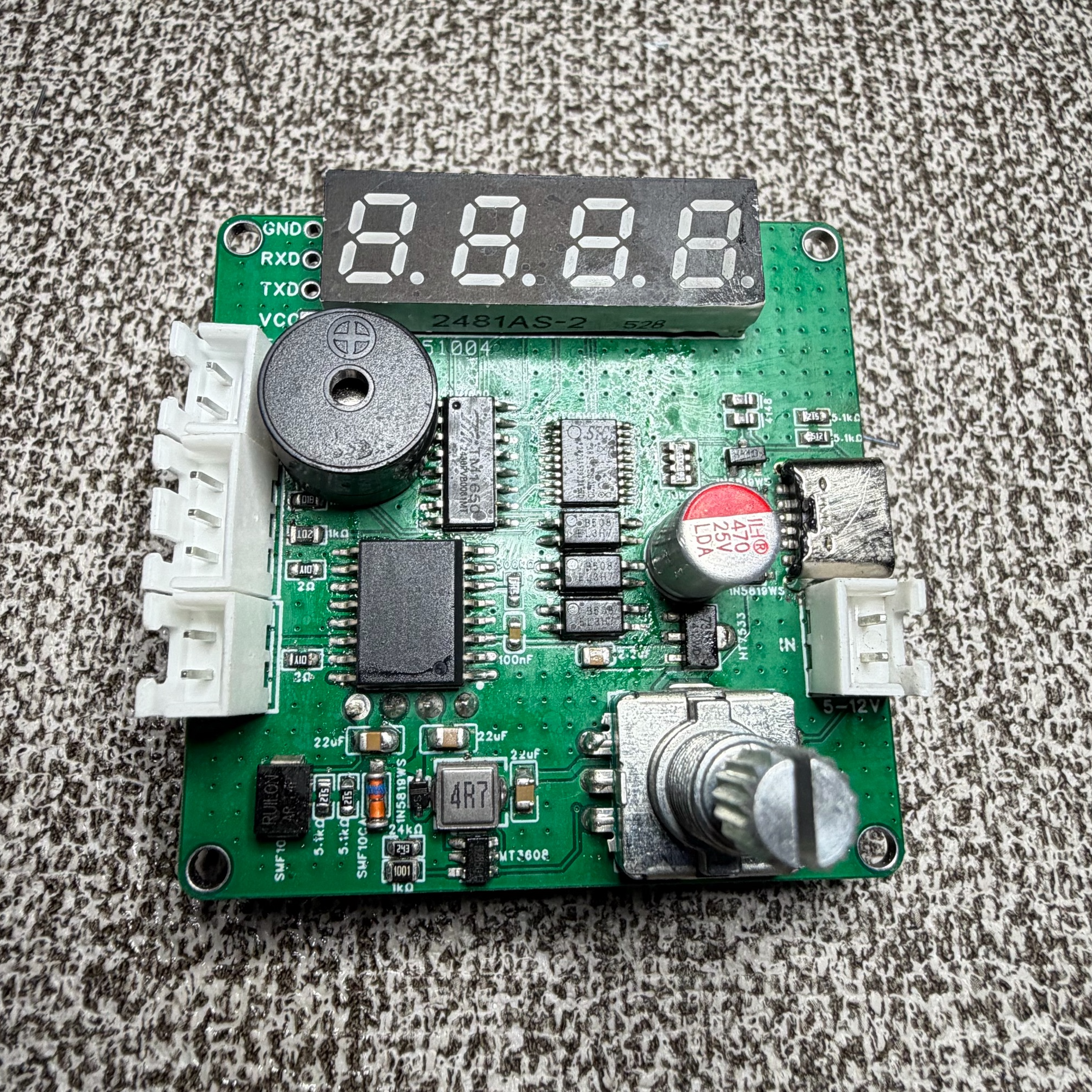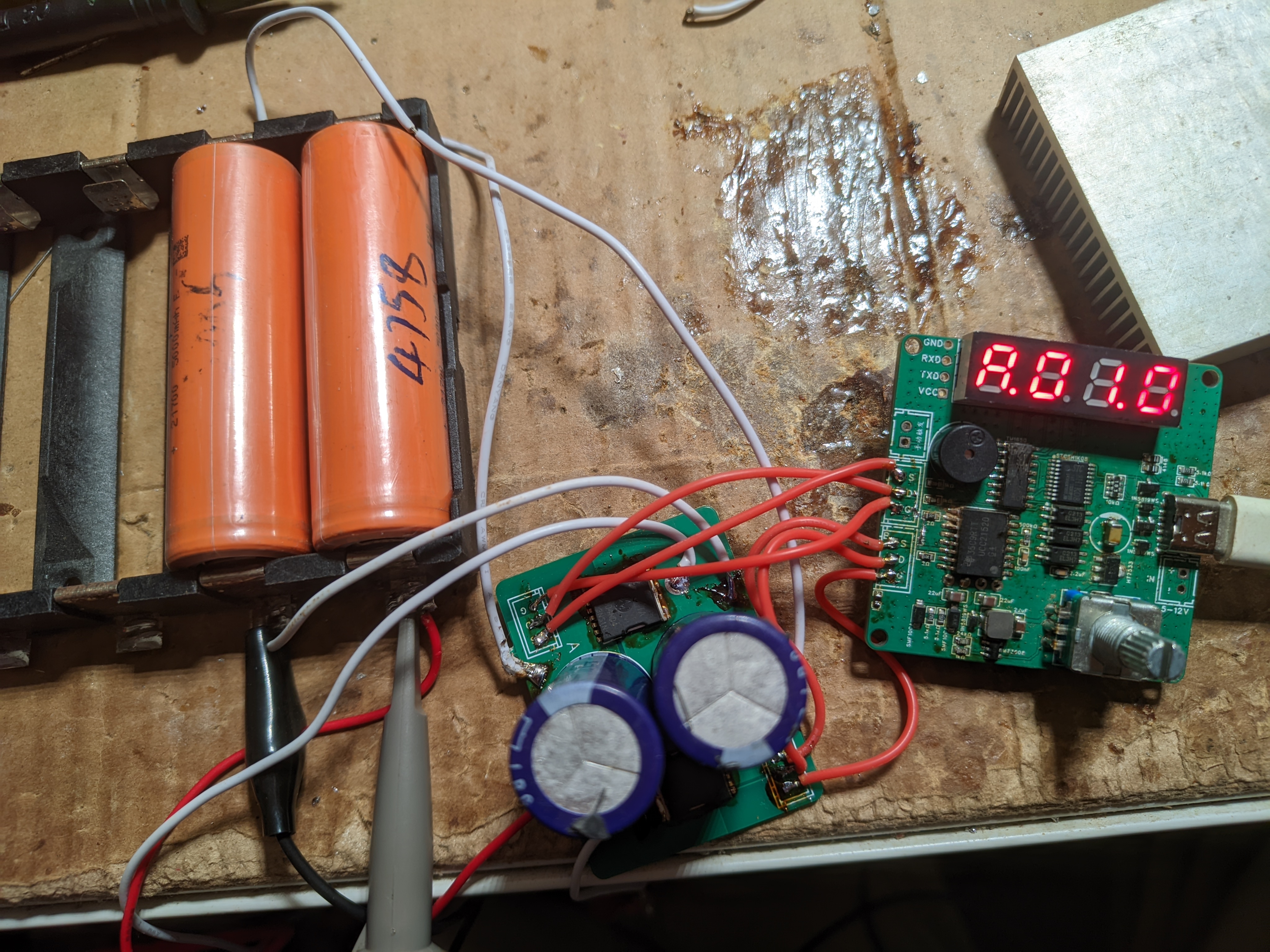 A组与控制板共地,焊接左下D2二极管可由A组电容对控制板供电,不能从B组电容取电,或者用typec或右下插口单独给控制板供电.