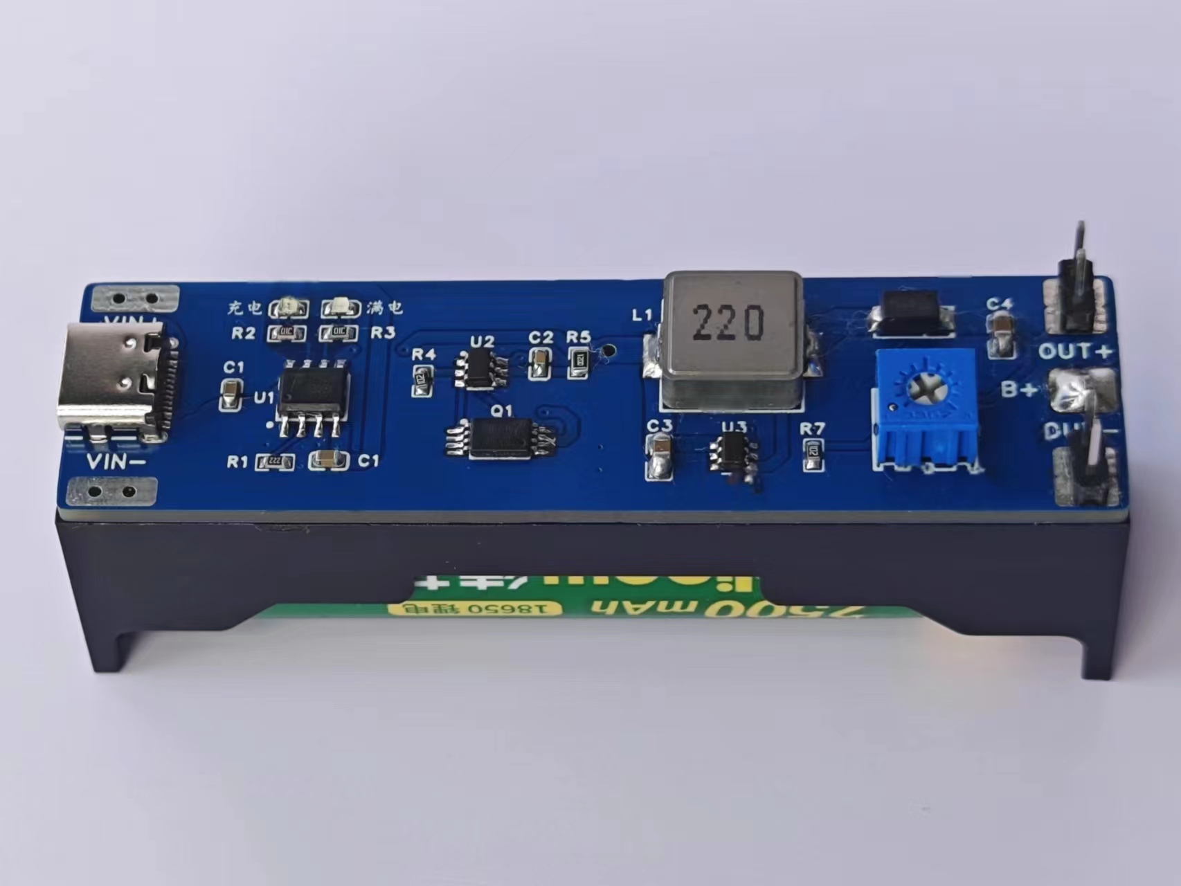该模块带充电保护,防止电池过充和过放,并且自动控制充电电流,type-c 接口,保留有输入焊接点。