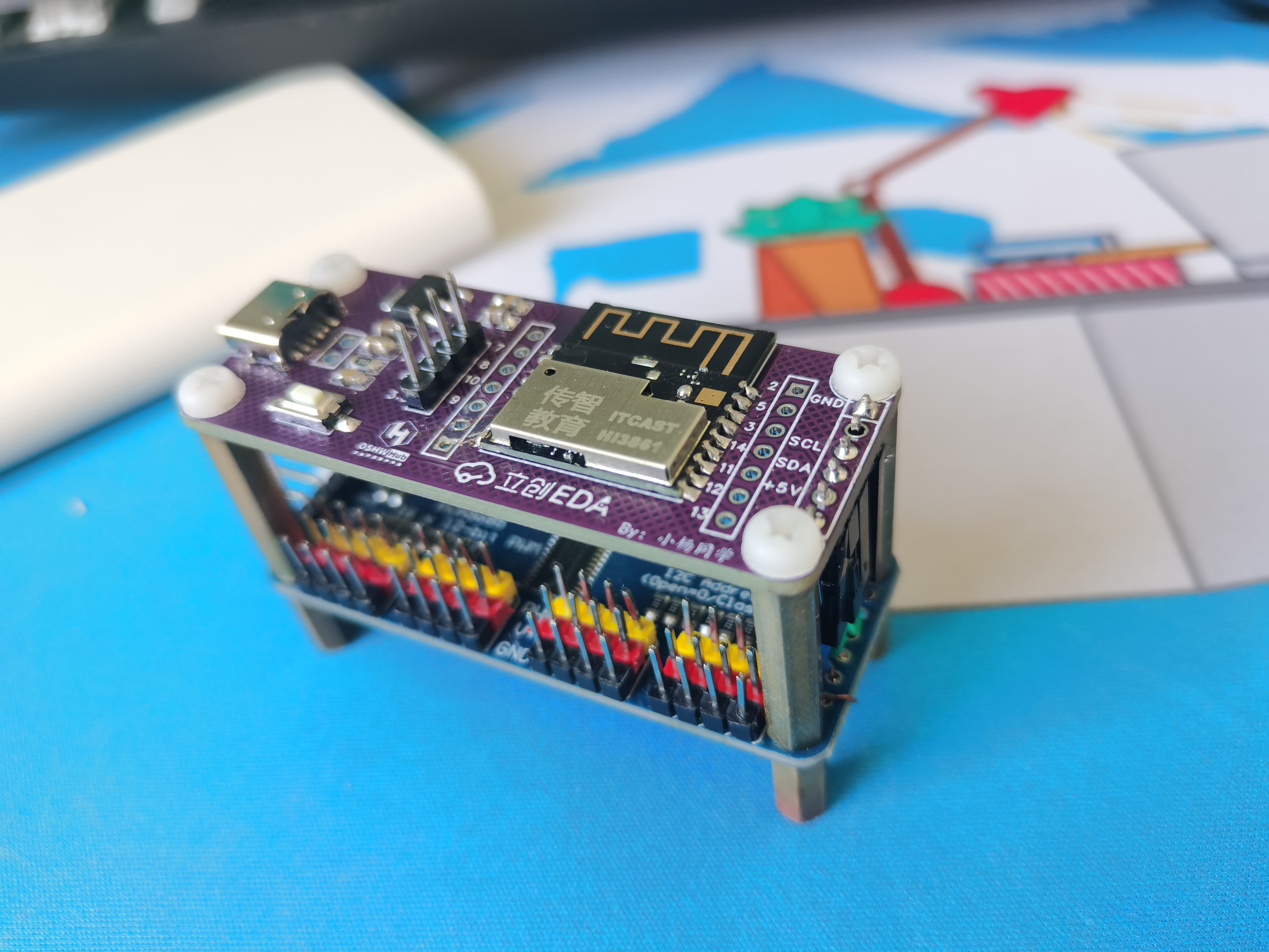 叠叠落的两块板子,一块自己画的Hi3861主控板另一块是pca9685模块(淘宝买20左右)