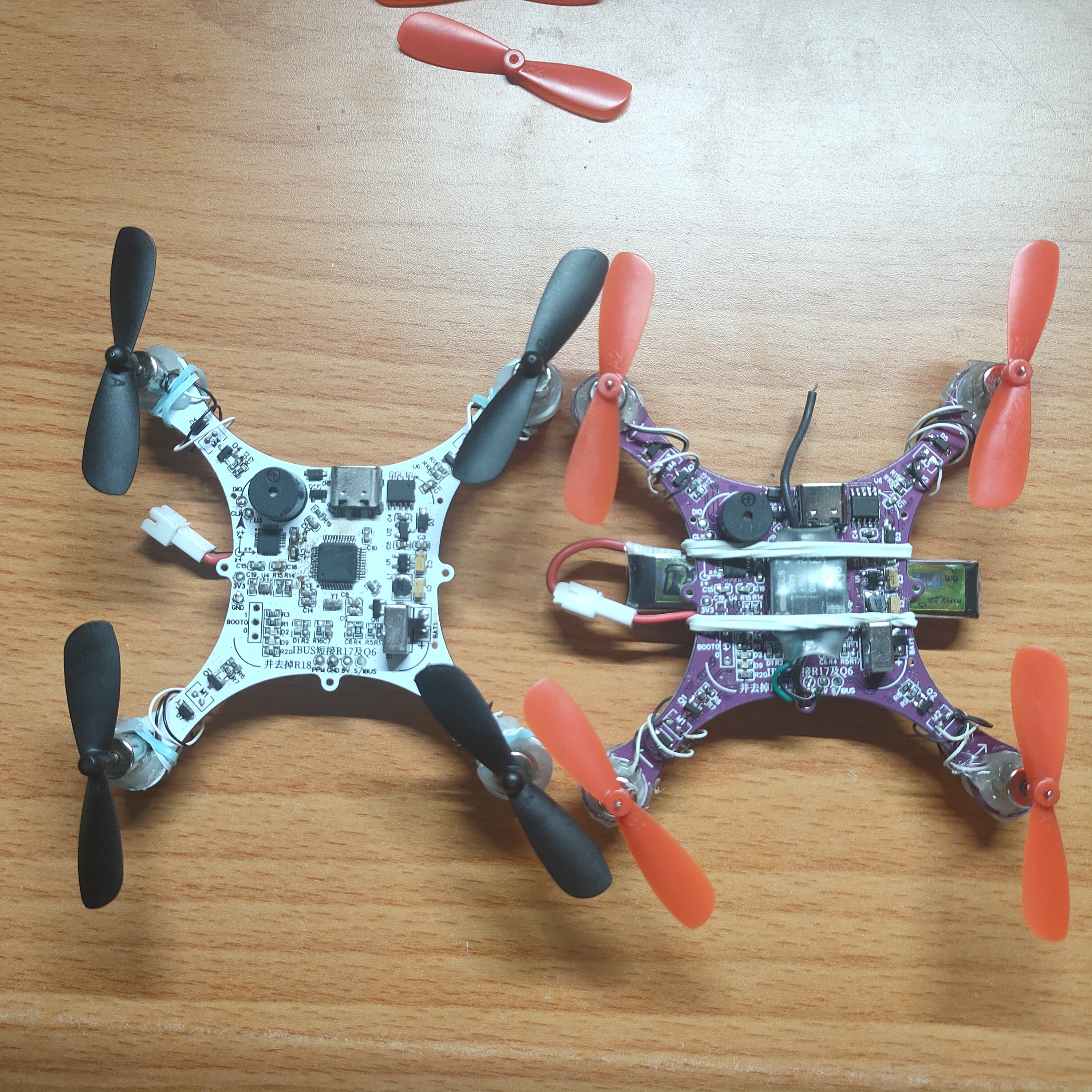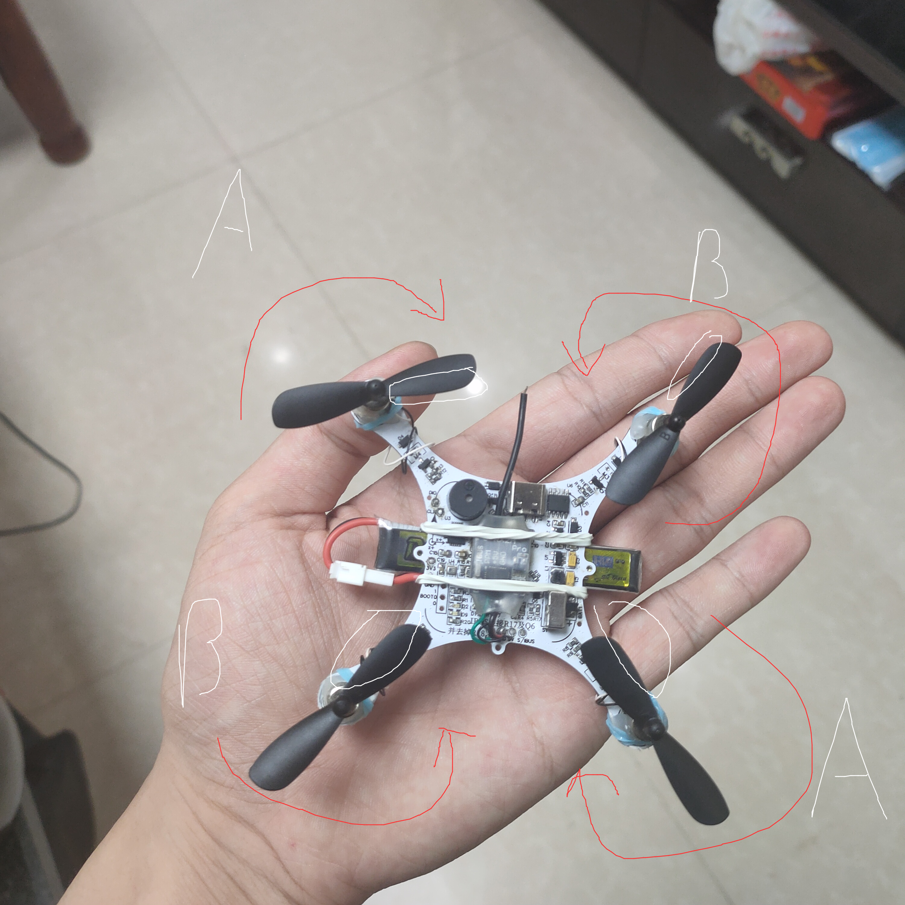 然后就在广场找到了一个很棒的空心杯四轴(酷电玩家 的项目),但是不能接外置接收机而且需要再制作一个遥控器,调参需要进入源码去调。