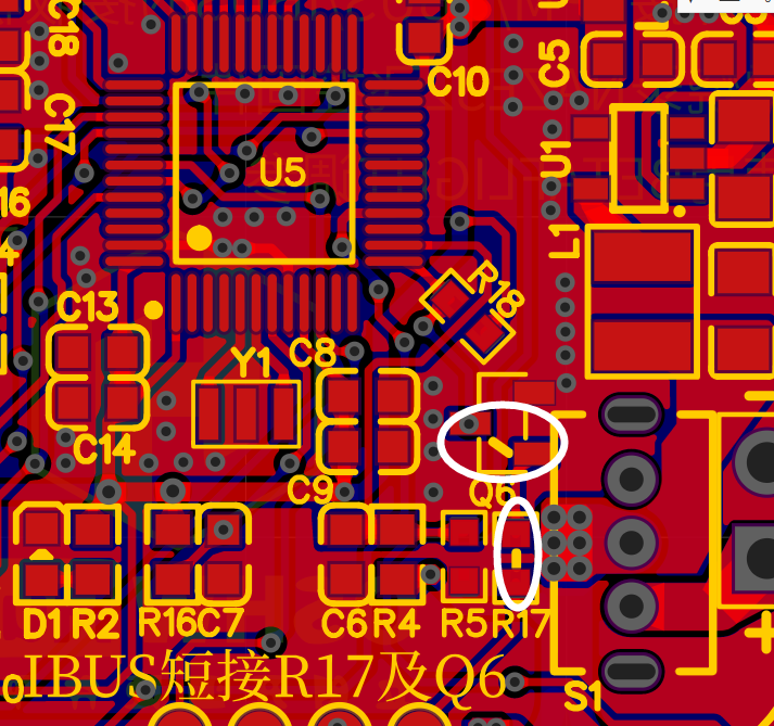 反相器部分为R18,Q6,R17,不焊接时需要将R17、Q6画线连接部分用锡短接,R18不焊。