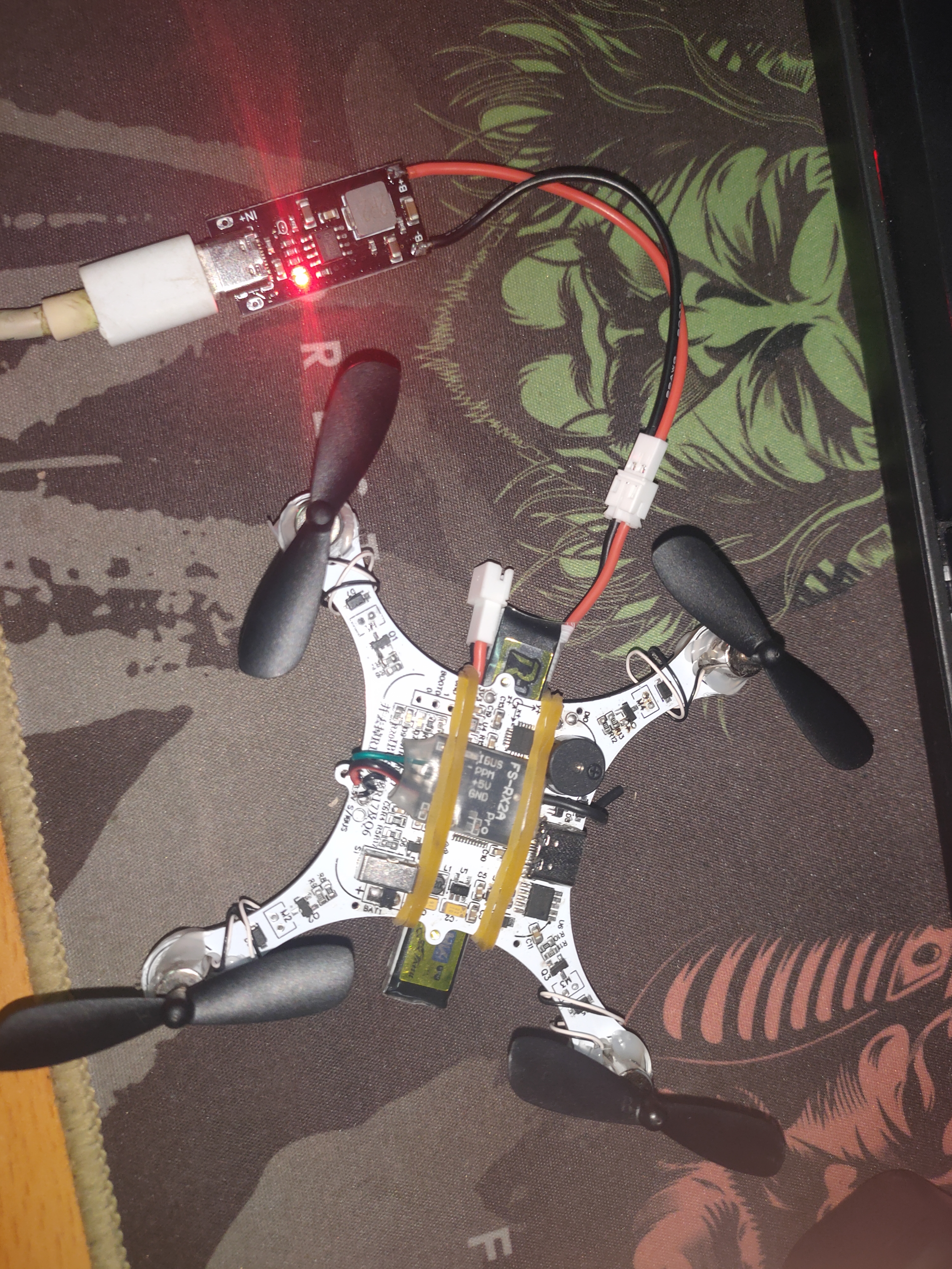 电池我用的格式1S电池(4.35V),19块钱有点贵,充电器就几块钱买了个4.35V充电模块,再买个PH2.0插头就做好了高压充电器。这种1S电池充电器别买那种配套的,充的很慢的,自己买个大电流的锂电池充电模块改装最划算,而且充电还快,我这个电池用4.35V 3A的充电模块只用几分钟就能充满电,而电池充满能飞四五分钟,买多两个电池就能无限续杯。建议使用4.35V的高压电池,飞机升力大一点。