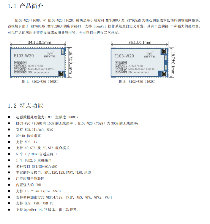 E103-W20模组出场时默认烧录的是固件是OPENWRT 14.07版本固件,二次开发教程可参考E103-W20模组数据手册