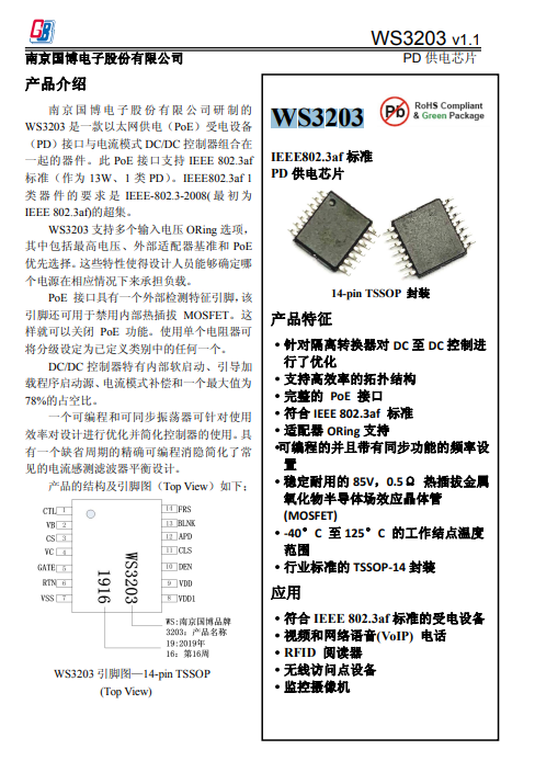 POE隔离电源主控:为南京国博WS3203