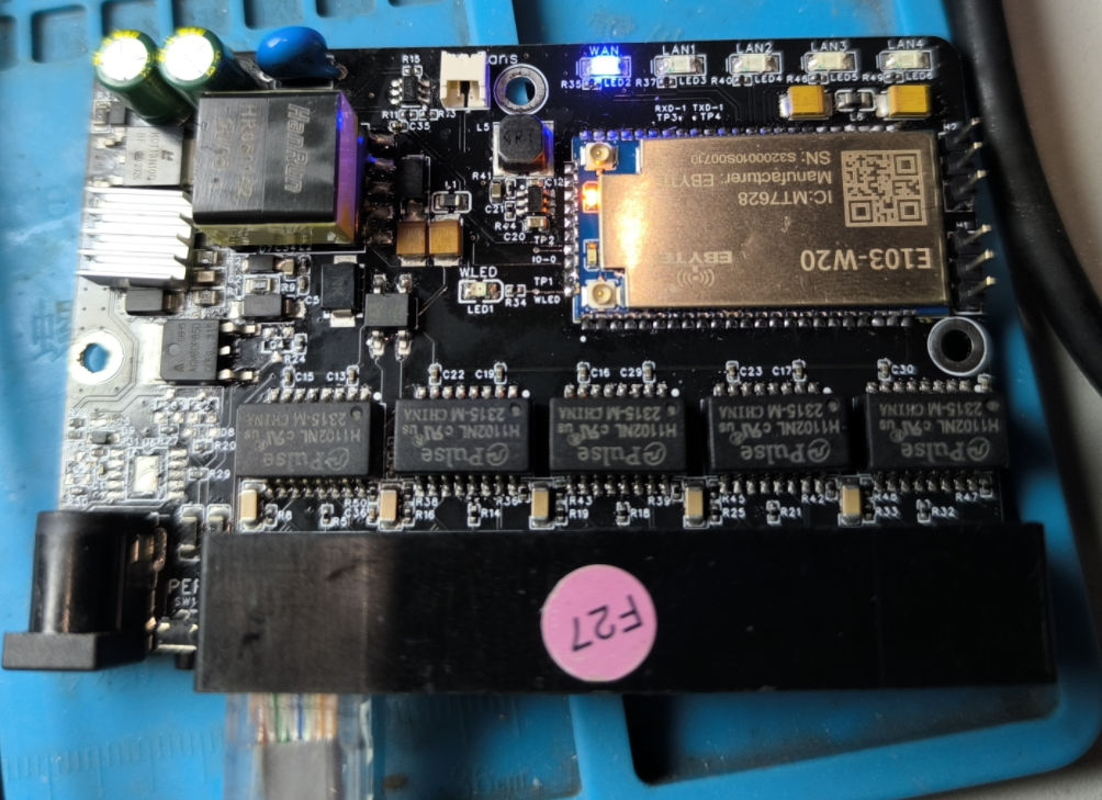 主控部分选用亿百特E103-W20模组(MT7628主控)